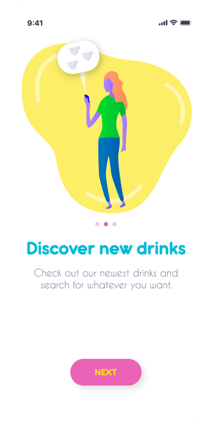 The interface was designed to help users find drinks, order fast and relaod money as easily as possible.